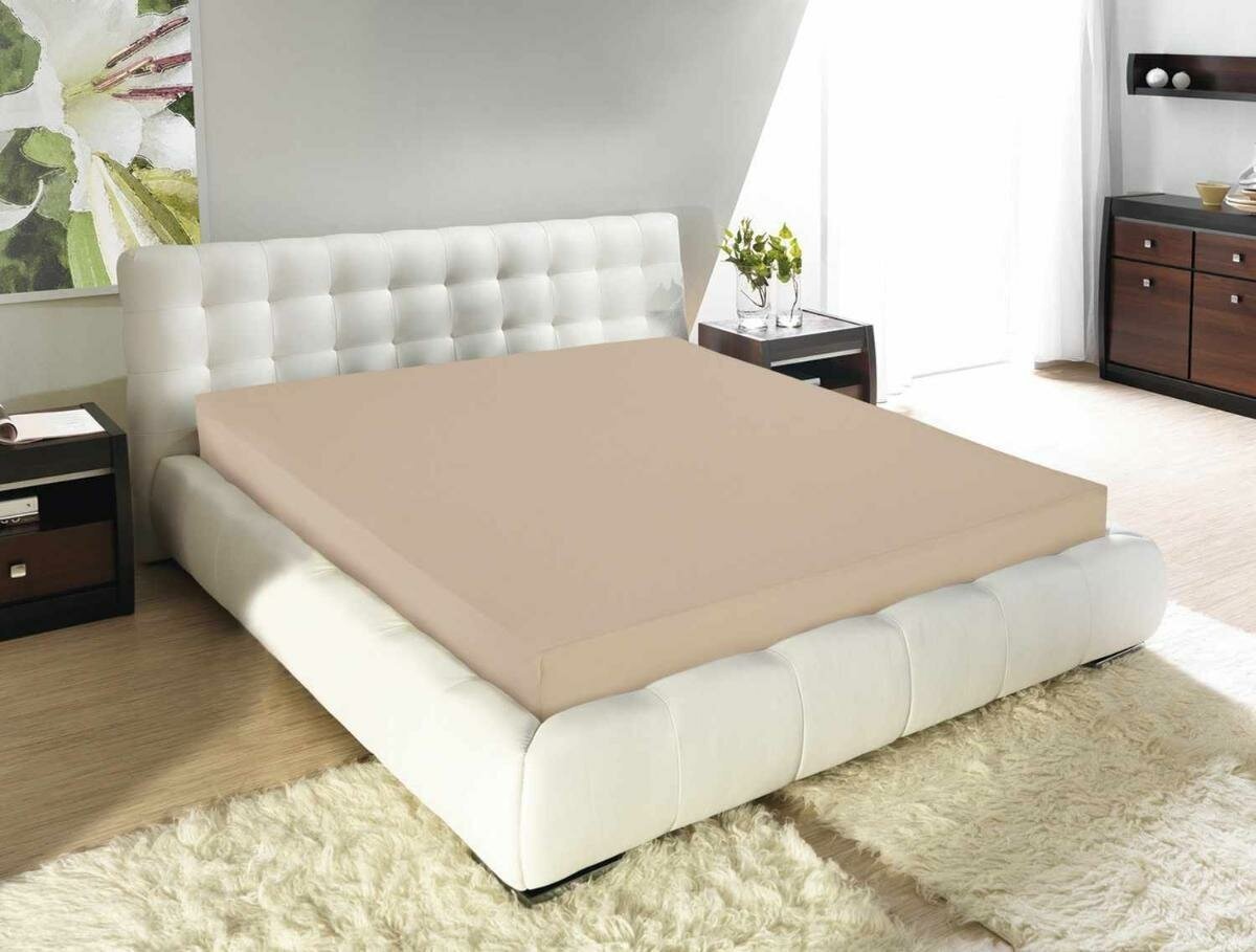 Простыня на резинке трикотажная Guten Morgen 200х200, 125 г/м2, бежевый .