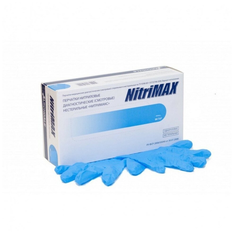 NitriMax, Перчатки одноразовые нитриловые, голубые, M, 100 шт/уп