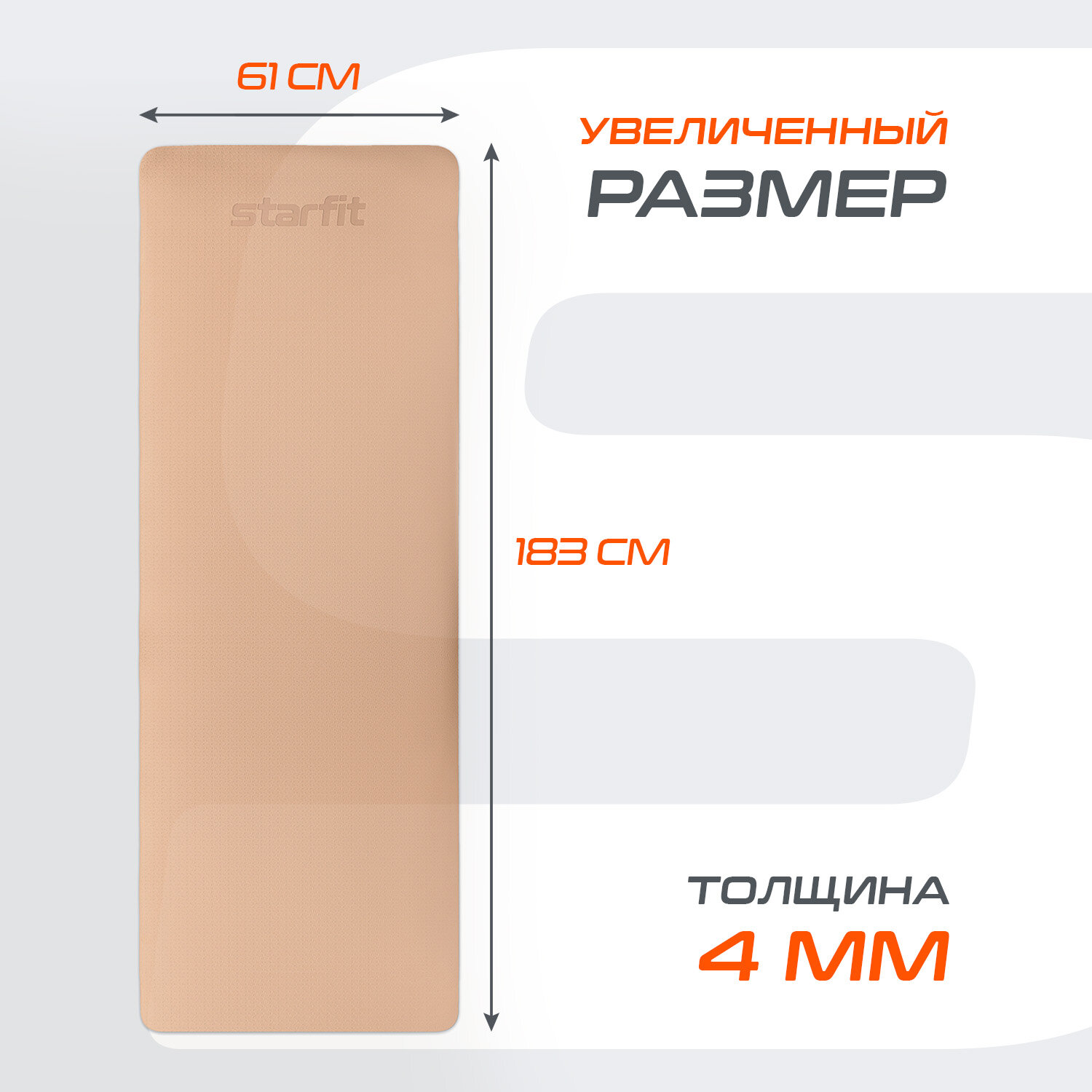 10 цен на Коврик для йоги и фитнеса STARFIT FM-201, TPE, 183x61x0,4 см, персиковый/серый с шнурком для переноски