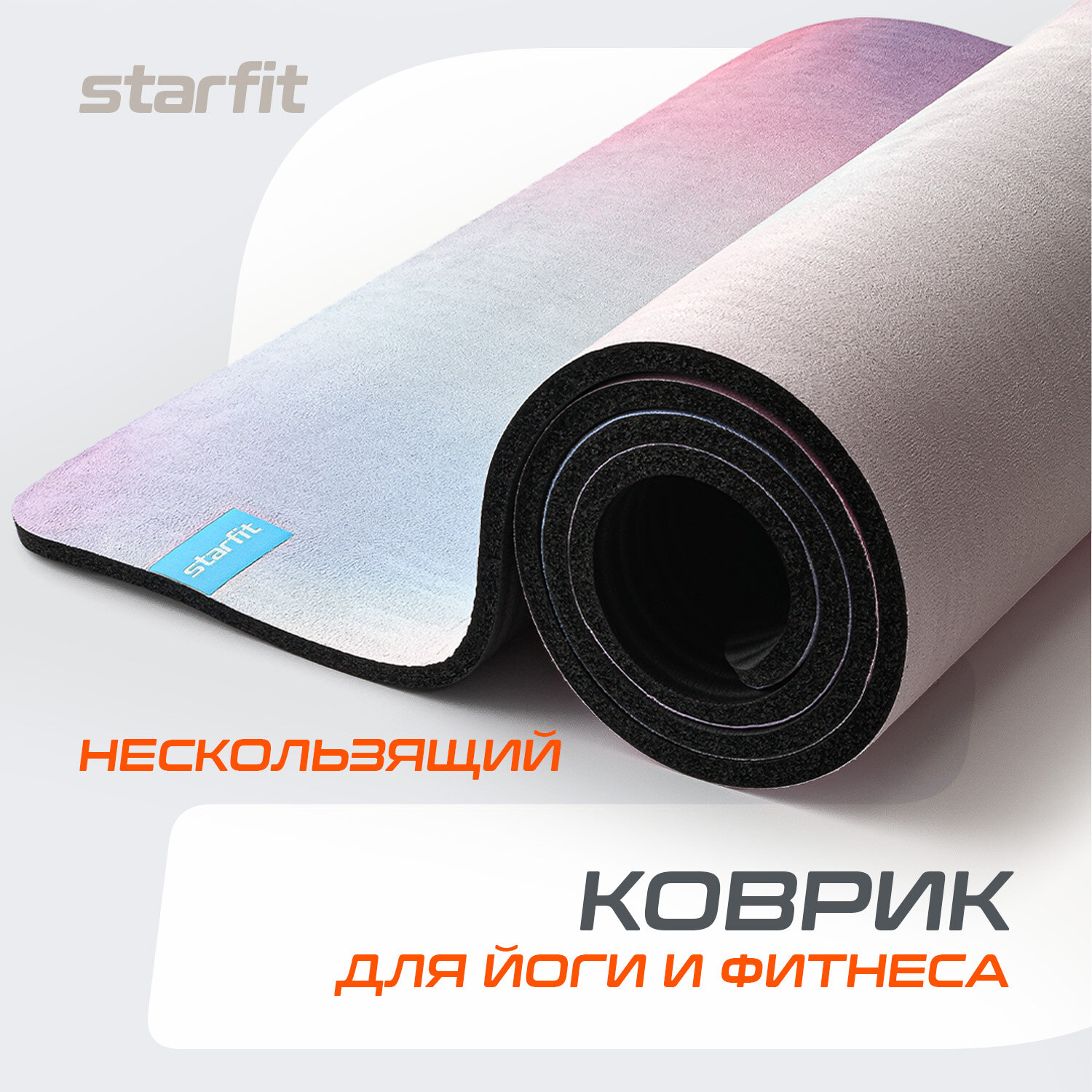 Коврик для йоги Starfit FM-301, 183х58х1 см фиолетовый надпись 1 529 ₽