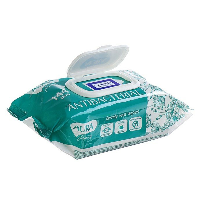 10 цен на Влажные салфетки AURA FAMILY, с антибактериальным эффектом 144 шт.
