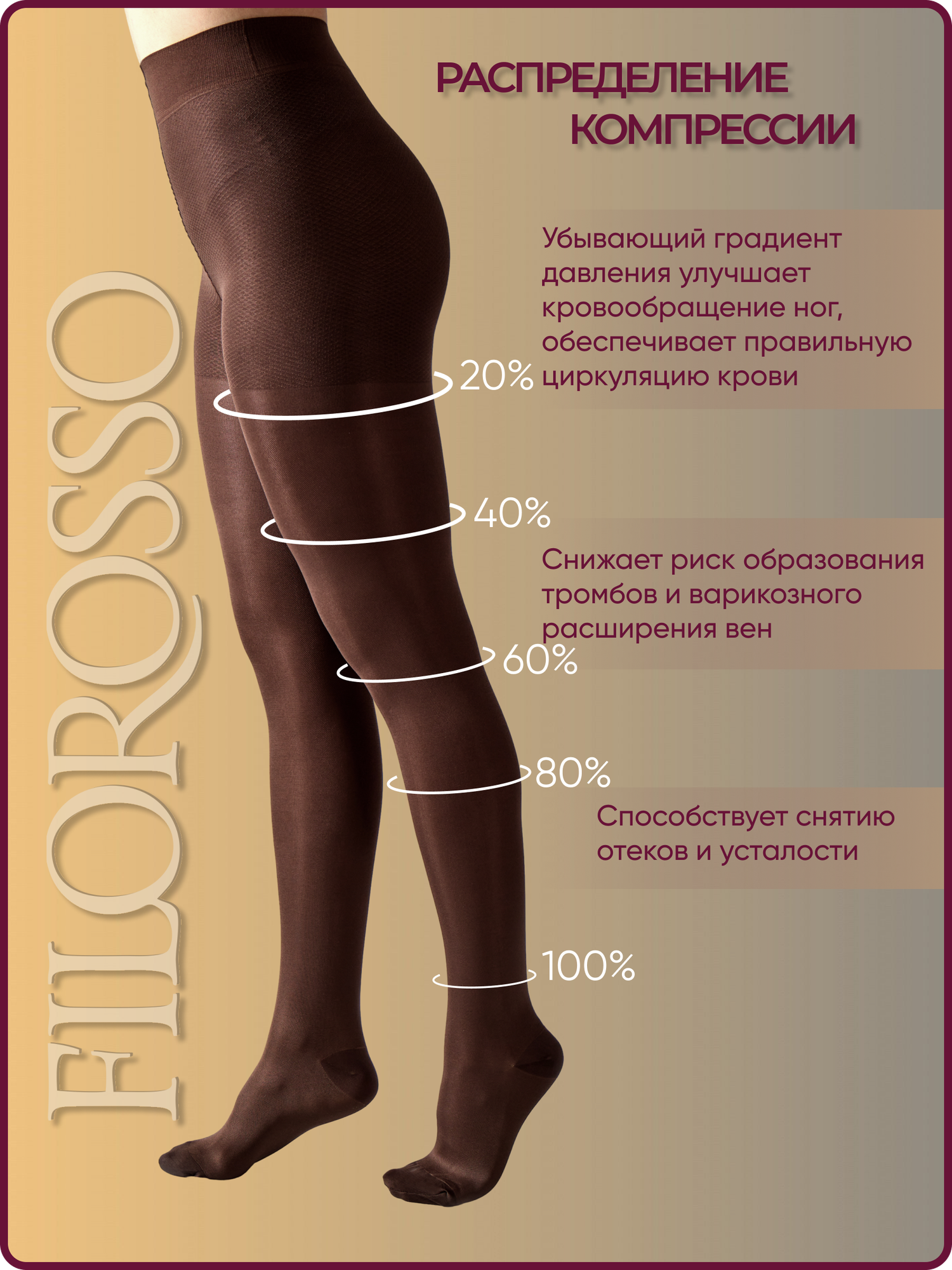 Отзывы на Колготки компрессионные 2 класс Terapia FILOROSSO 140 den, кофе, размер 6