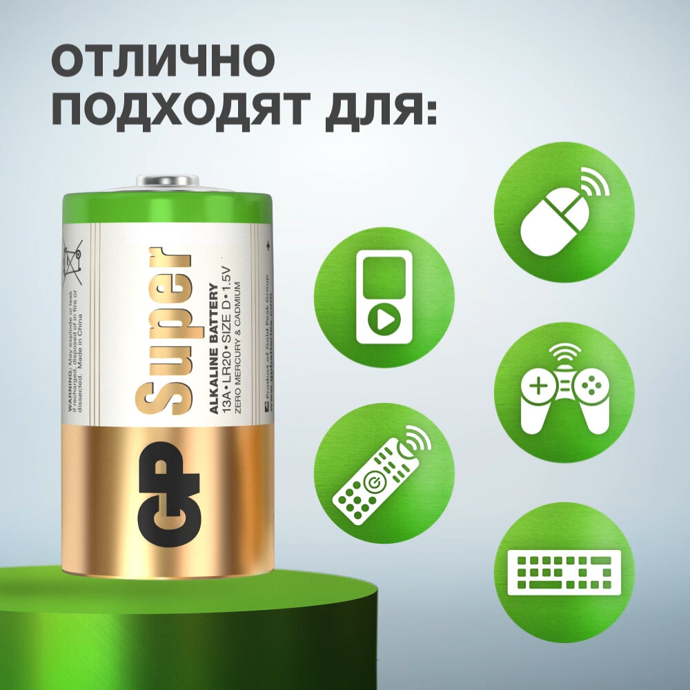 Батарейка GP Batteries Super D LR20 1,5 В (2 шт.)