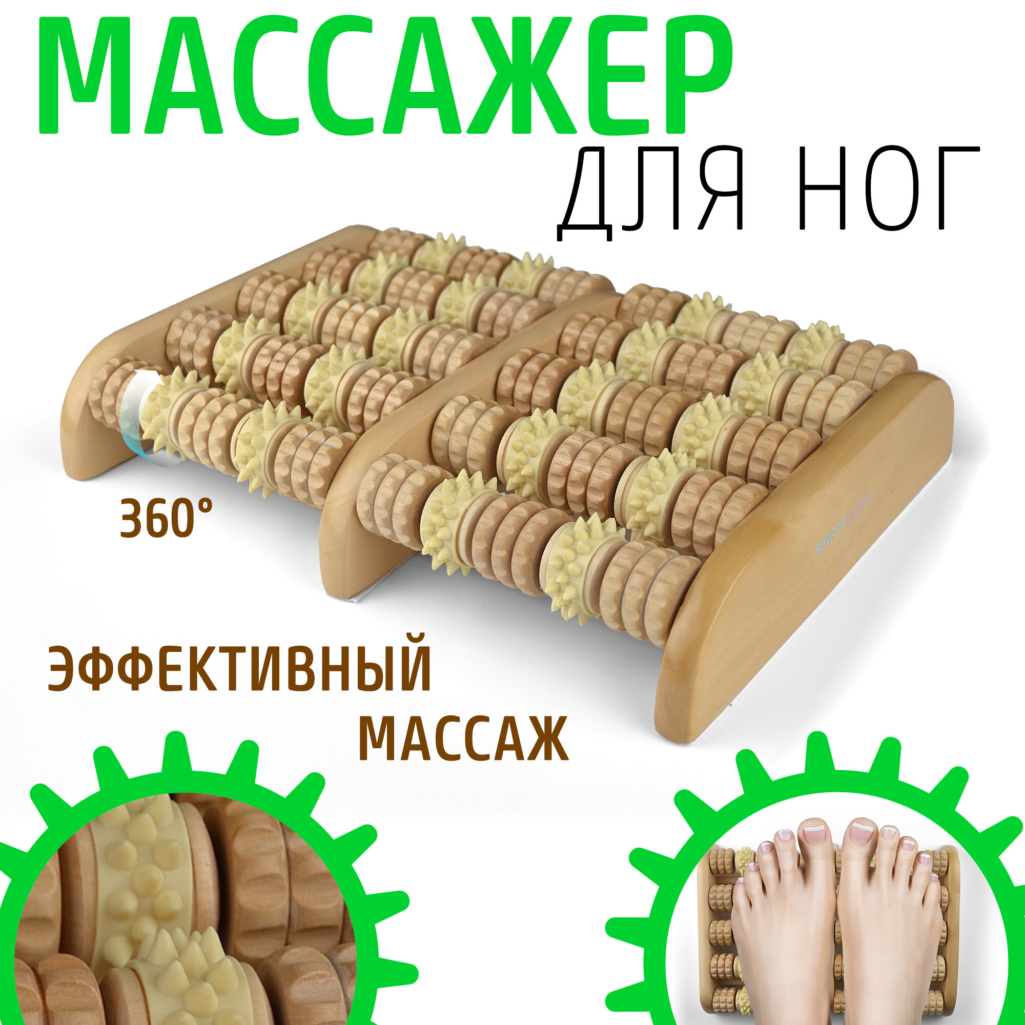 Массажер деревянный Счеты зубчатые для ног ER-1003 Ergopower
