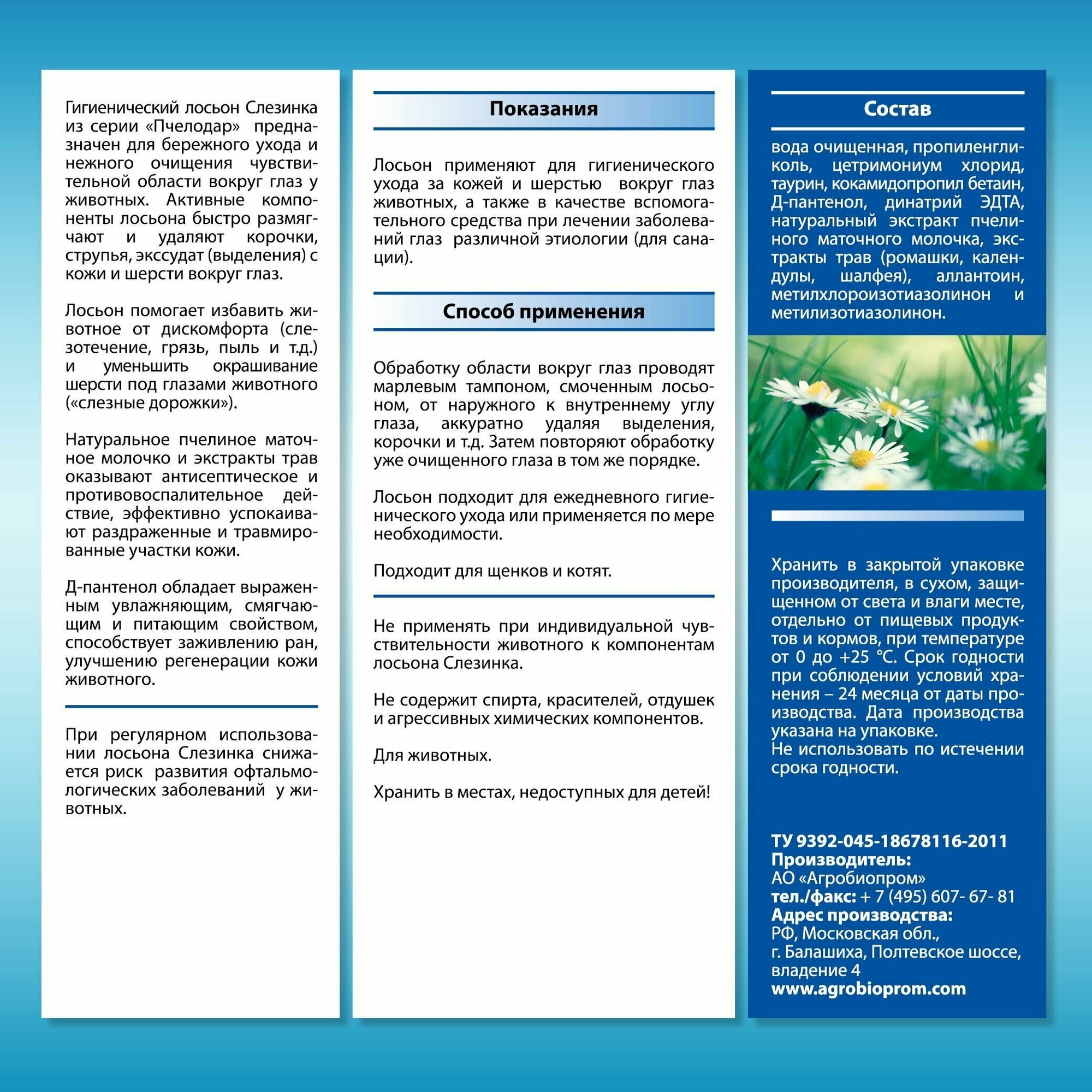 Пчелодар слезинка лосьон гигиенический с маточным молочком для очищения глаз у животных 50мл