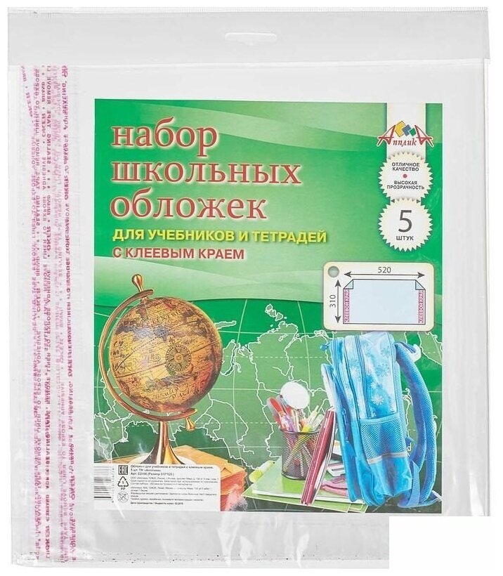 Апплика Обложки для учебников и тетрадей с клеевым краем, 5 штук (С2466-01)