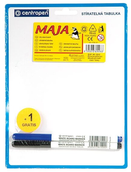 Доска маркерная Centropen "Maja" ("Майя") А5, 180*240 мм, двусторонняя, линия, 2 маркера (7729)