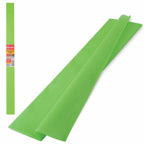 Цветная бумага крепированная плотная, растяжение до 45%, 32 г/м2, BRAUBERG, рулон, светло-зеленая, 50х250 см, 126536 информация: