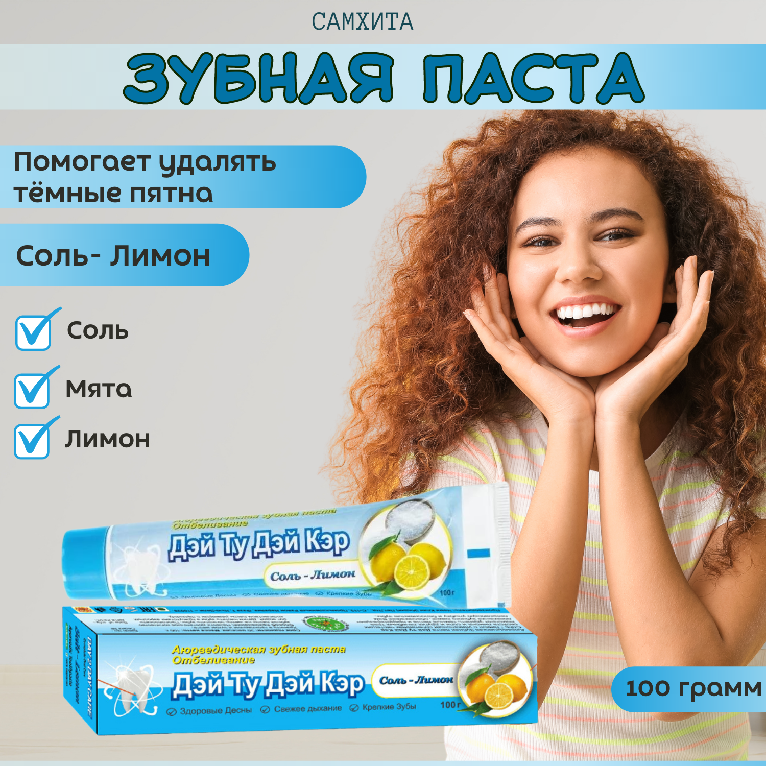Аюрведическая Зубная паста отбеливание соль-лимон 3 шт - 100 гр Дэй Ту Дэй Кэр информация: