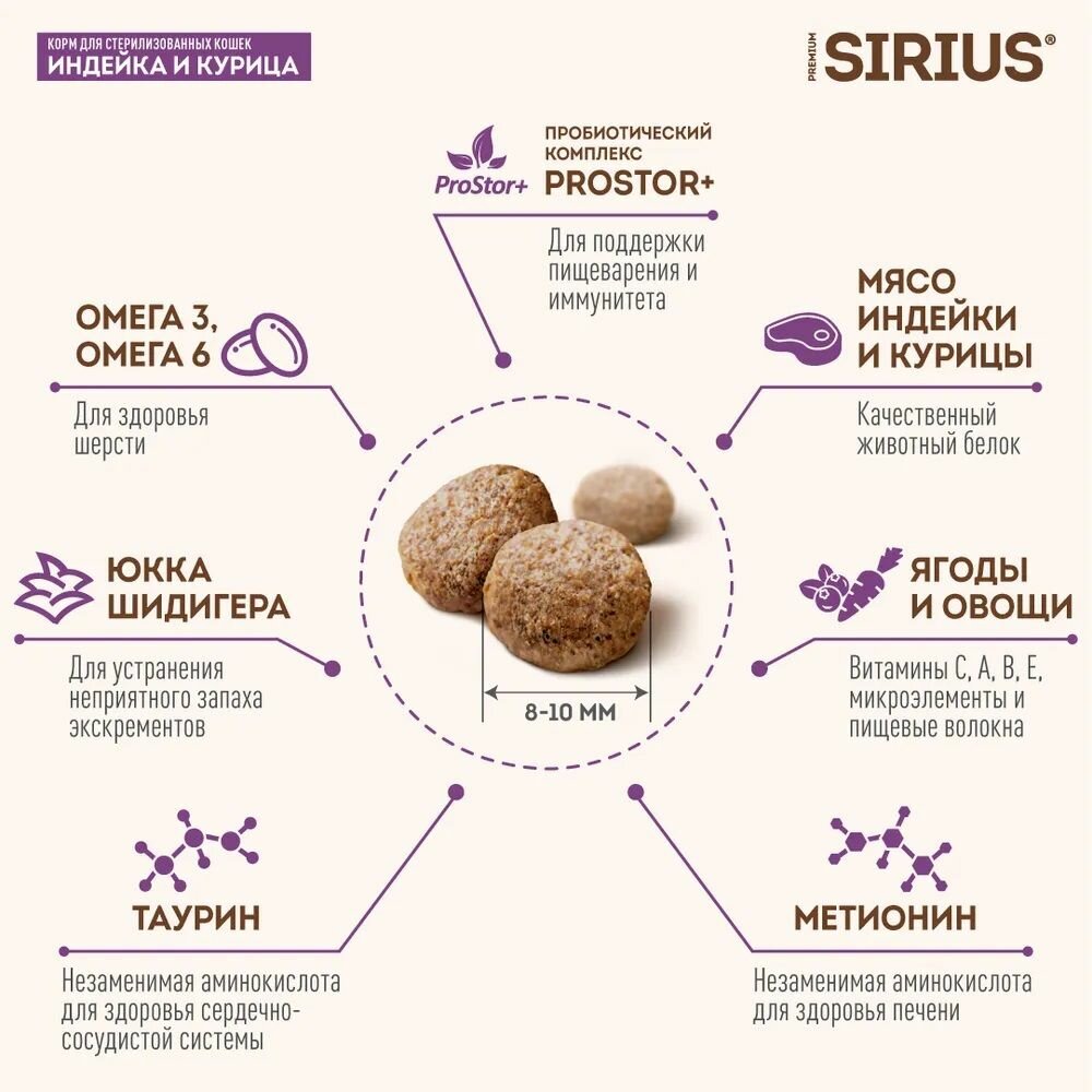 Сириус Корм сухой для стерилизованных кошек Индейка и Курица 10кг информация: