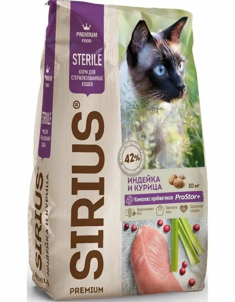 10 цен на Сириус Корм сухой для стерилизованных кошек Индейка и Курица 10кг