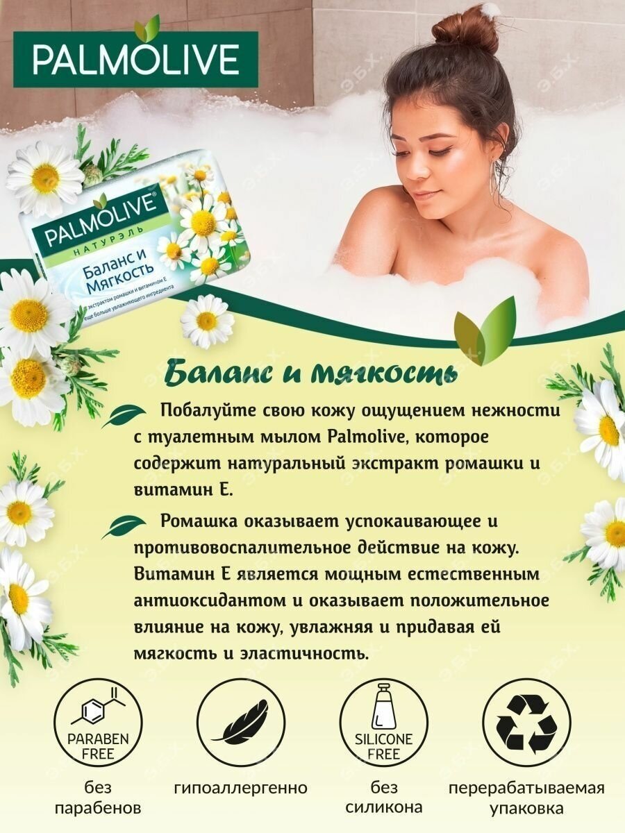 Palmolive Мыло туалетное Натурэль, Баланс и мягкость, Ромашка и Витамин Е, 90 г, 6 шт информация: