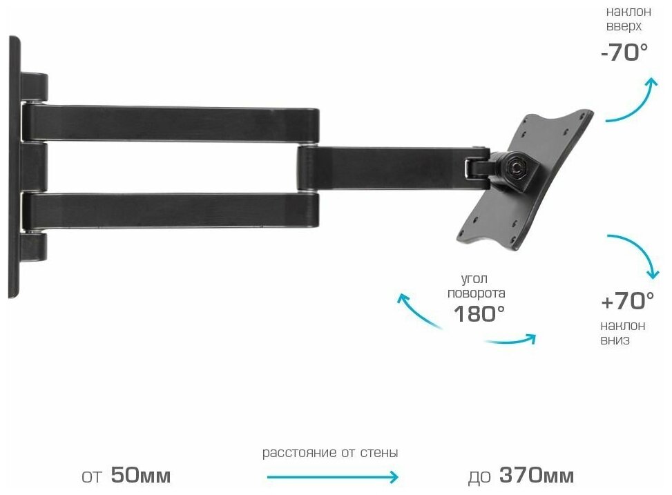 Кронштейн ARM Media LCD-7101 для LCD/LED ТВ 10-26, настенный, 4 степени свободы, Vesa 75/100, max 15 кг Черный 2 130 ₽