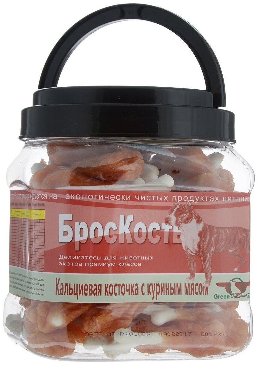 Лакомство для собак GreenQzin БросКость (Кальциаевая косточка с куриным мясом) туба 750г