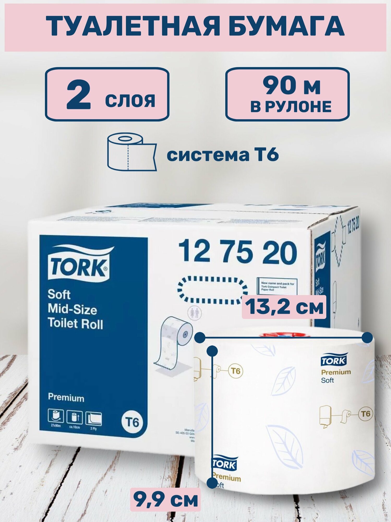 Туалетная бумага Tork Premium Mid-size в миди-рулонах (система T6) 90м, арт. 127520 4шт информация: