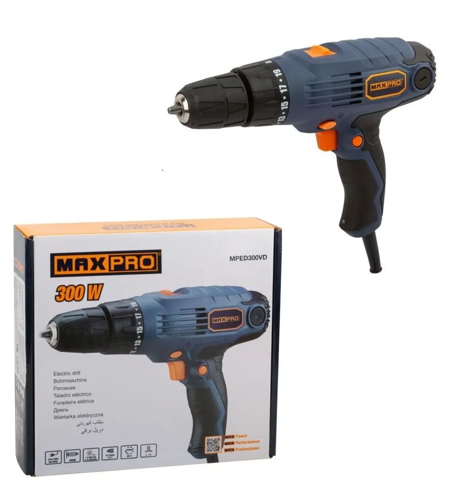 Шуруповерт сетевой Maxpro MAX-PRO MPED300VD, 300 Вт, 0-450/0-1350об/мин, 24.0 Нм
