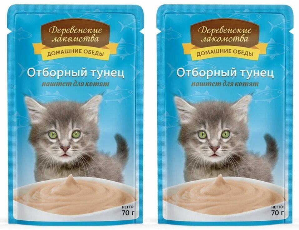 Деревенские лакомства Влажный корм для котят Домашние обеды, "Отборный тунец", 70 г, 2 шт информация: