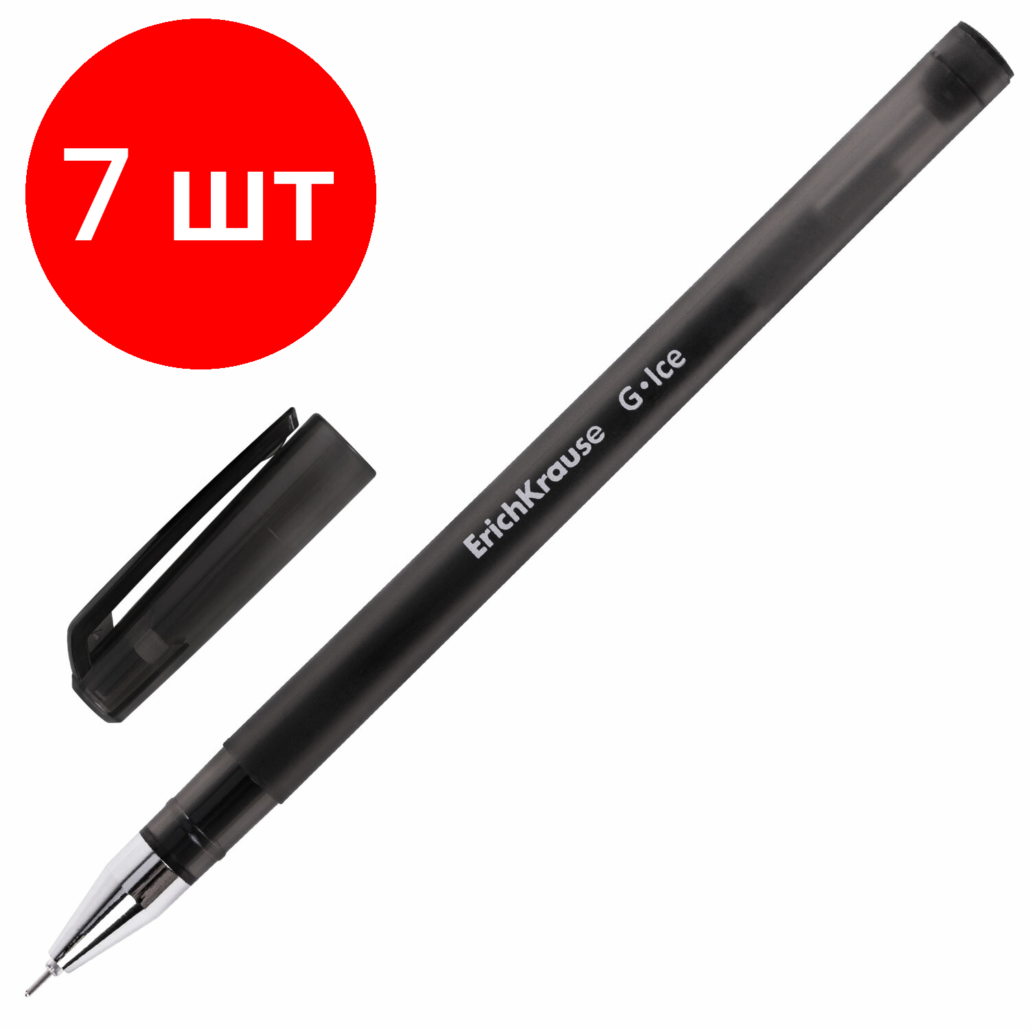 10 цен на Комплект 7 шт, Ручка гелевая ERICH KRAUSE "G-Ice", черная, корпус прозрачный, игольчатый узел 0.5 мм, линия письма 0.4 мм, 39004