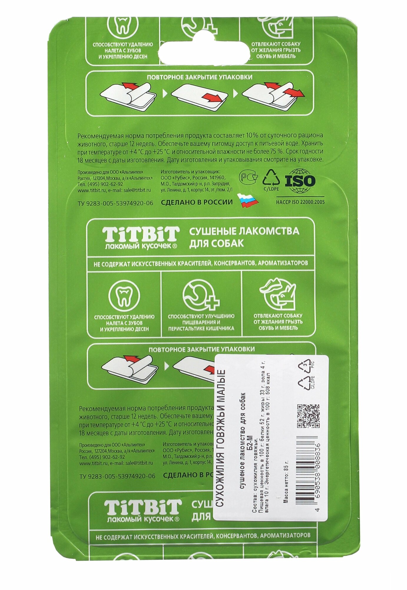 Титбит 8836 Сухожилия говяжьи малые Б2-М шоубокс 85гр информация: