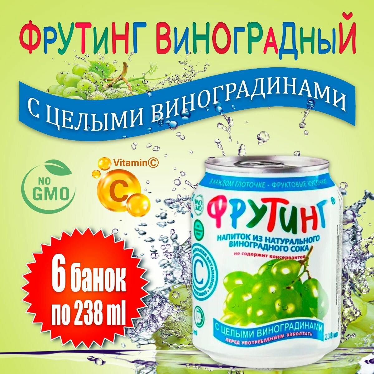 Отзывы на Напиток сокосодержащий Fruiting из сока винограда и кусочками винограда, 6 шт х 238 мл