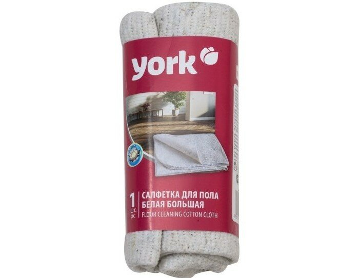 Салфетка бытовая для пола хлопок, 0.8х0.6 м, в рулоне, York, Белая, 022230