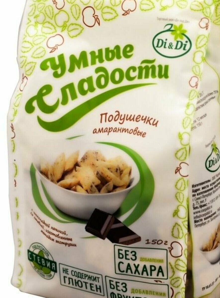 Подушечки амарантовые «Умные сладости» с какао и сливочной начинкой 220г