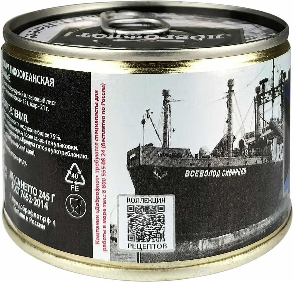 Сайра с добавлением масла, тихоокеанская, ГОСТ, Доброфлот, 2 шт. по 245 г информация: