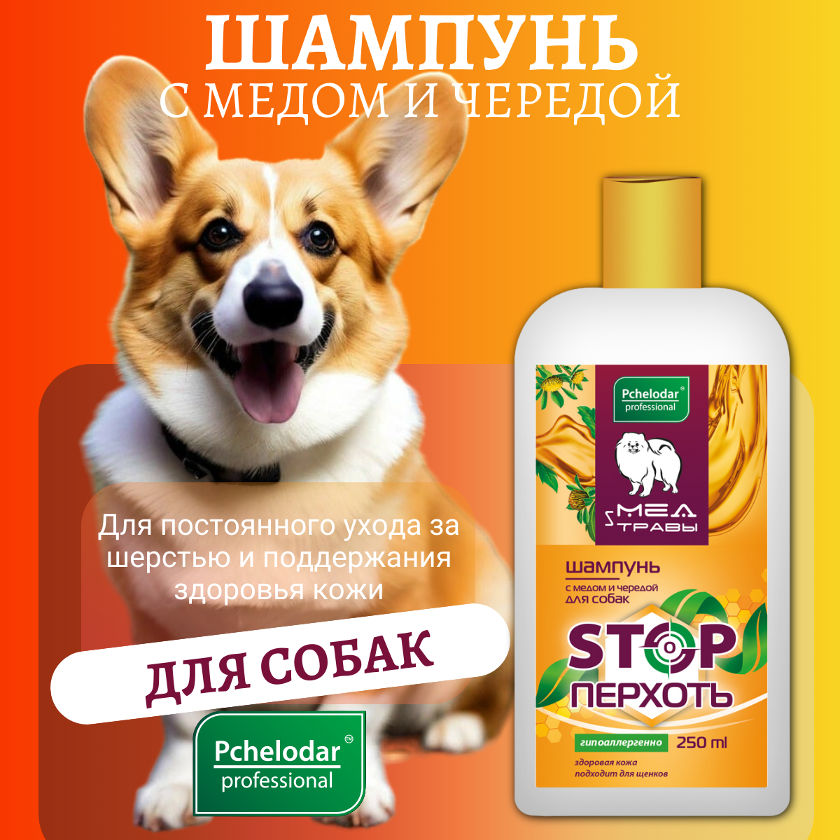 Пчелодар Шампунь для собак с мёдом и чередой Стоп перхоть 250мл информация: