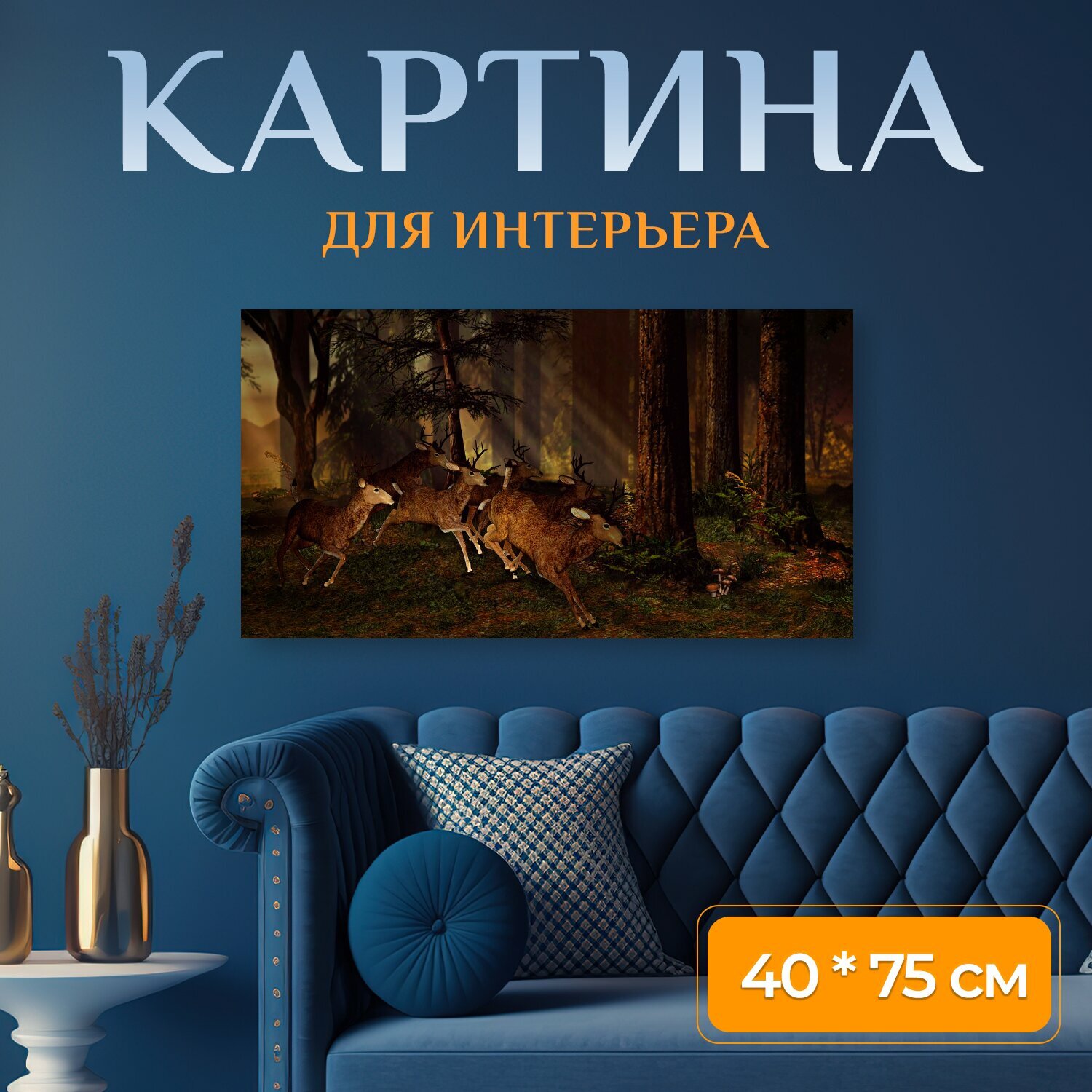 10 цен на Картина на холсте "Олень, дикий, животное" на подрамнике 75х40 см. для интерьера