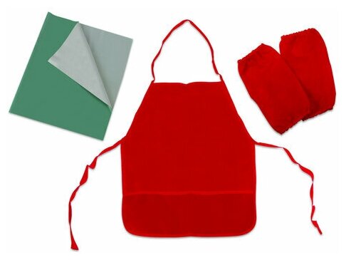 Набор для уроков труда пифагор: клеёнка ПВХ зеленая, 69х40 см, фартук и нарукавники красные, 227061 (цена за 1 ед.товара)