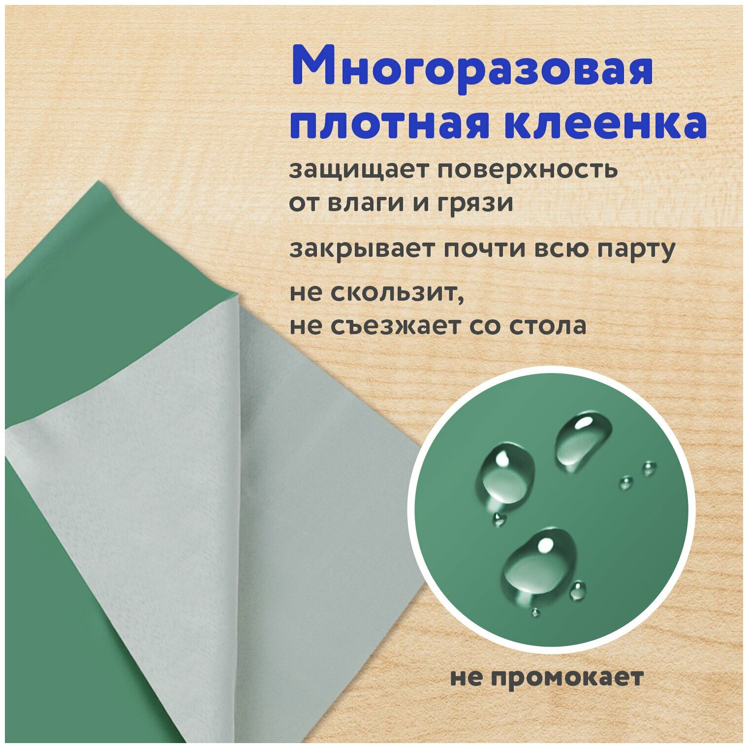 Набор для уроков труда пифагор: клеёнка ПВХ зеленая, 69х40 см, нарукавники синие, 227058, 227058 471 ₽