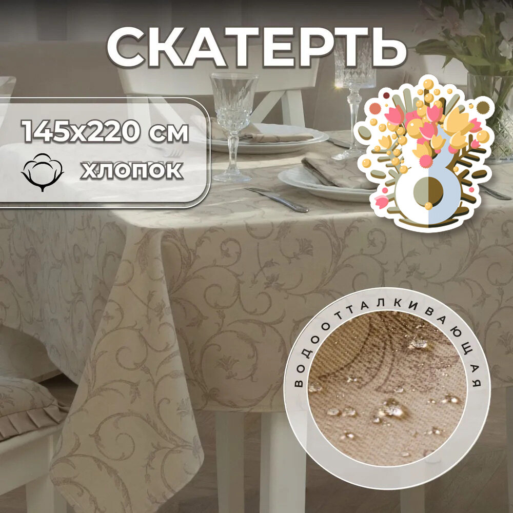 Скатерть на стол Fresca Design 145х220 см, водоотталкивающая с пропиткой, тканевая информация: