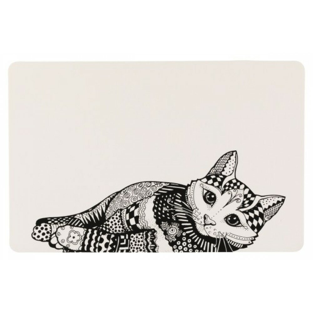 10 цен на Коврик под миску Trixie Zentangle, размер 44×28см., белый/черный