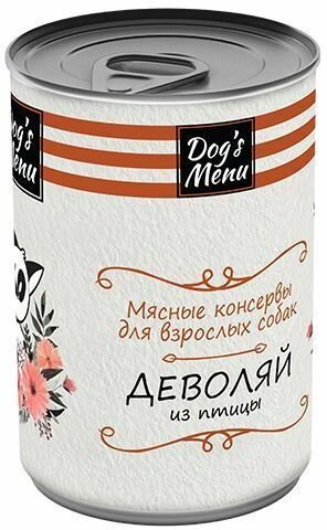 Dog s Menu Консервы для взрослых собак Деволяй из птицы, 340 г, 3 шт 593 ₽