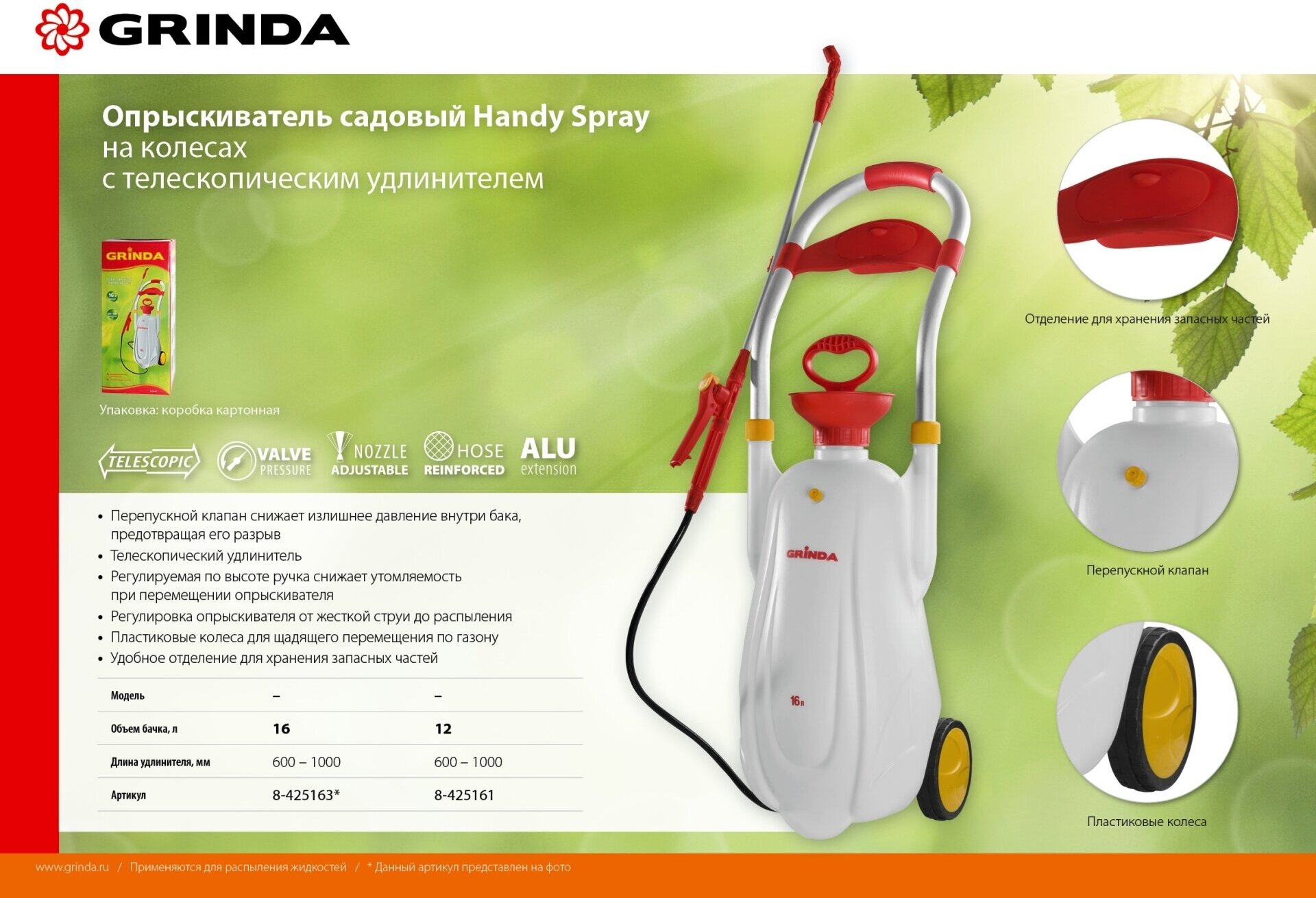Опрыскиватель сад. GRINDA Handy Spray, 12л c телескоп.удлинителем, на колесах информация: