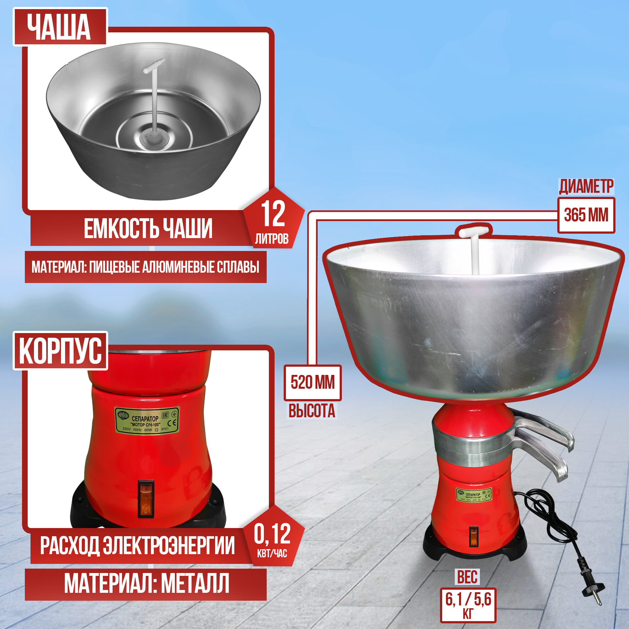 Сепаратор для молока Мотор Сич СЦМ-100-15, 12 л, красный информация: