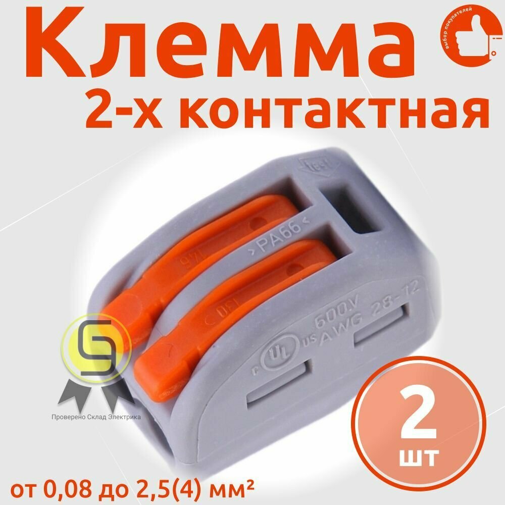 2шт. - Клемма 2x0.08-2.5мм / WAGO; арт. 222-412; оригинал / - комплект 2шт 256 ₽
