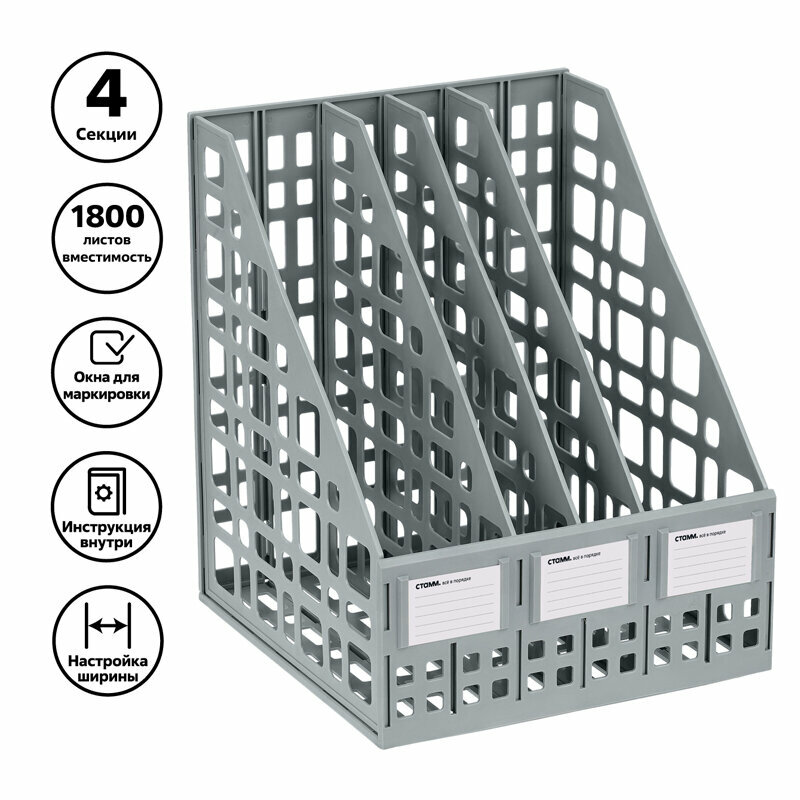 Лоток для бумаг вертикальный СТАММ, сборный, 4 отделения, серый - 2 шт. 2 897 ₽
