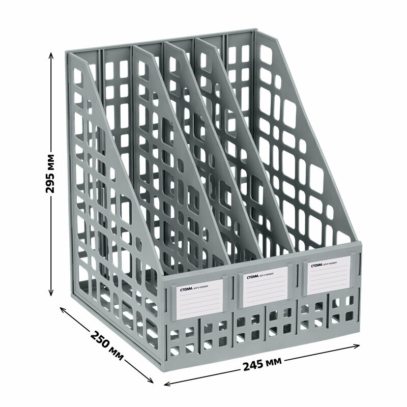 Отзывы на Комплект 3 шт, Лоток для бумаг вертикальный СТАММ, сборный, 4 отделения, серый