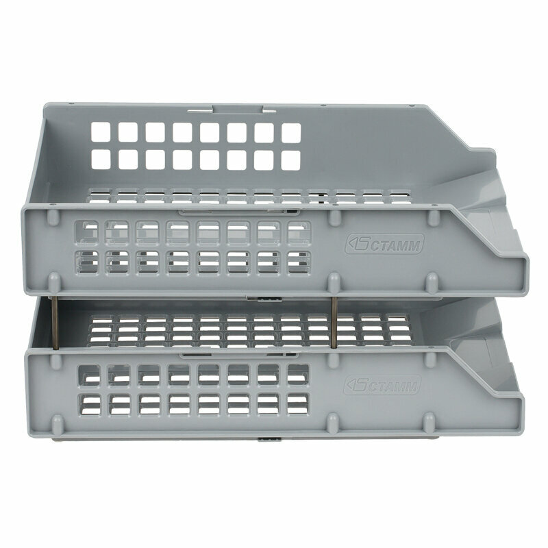 Лоток для бумаг горизонтальный СТАММ Strong, набор 2шт., на метал. стержнях, серый ( Артикул 096325 )