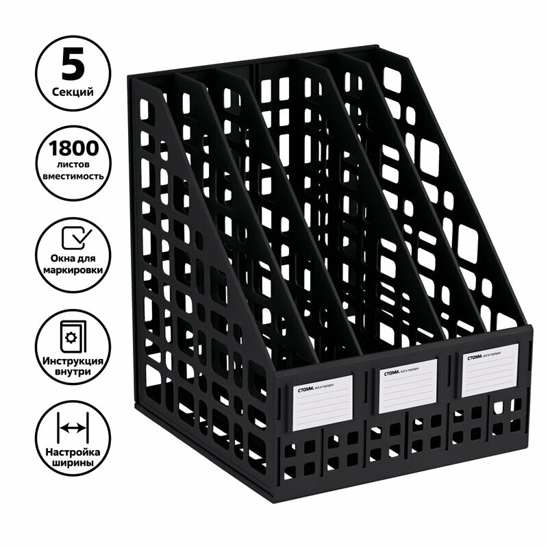 Лоток для бумаг вертикальный СТАММ, сборный, 5 отделений, черный ( Артикул 078397 )