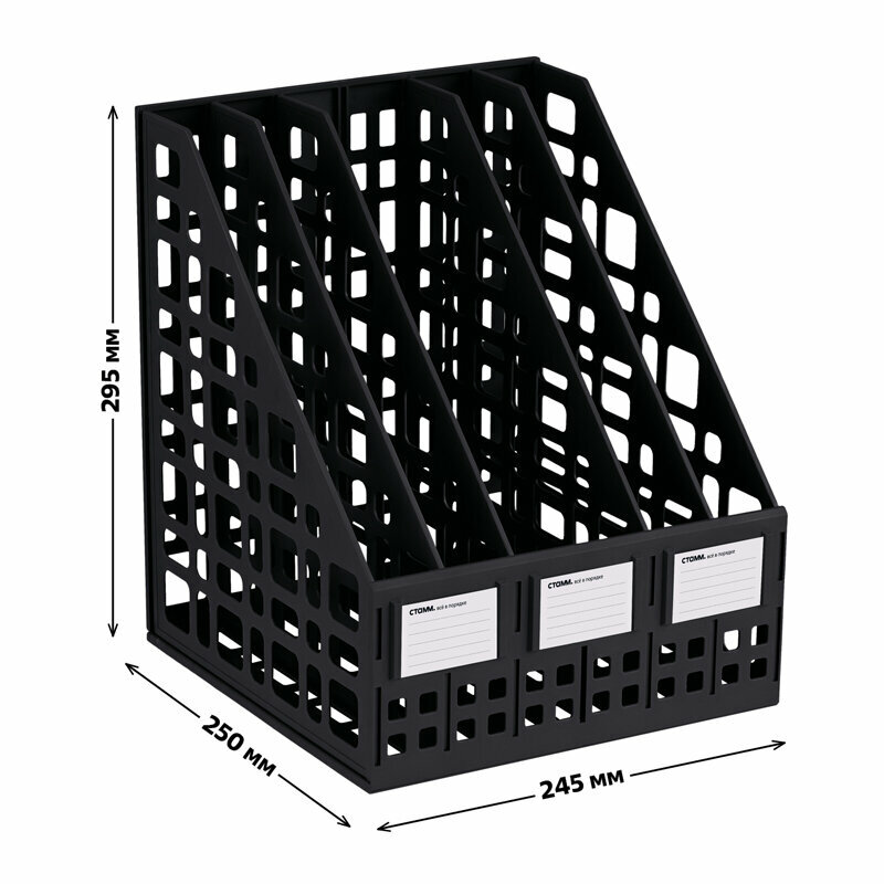 Комплект 4 шт, Лоток для бумаг вертикальный СТАММ, сборный, 5 отделений, черный информация: