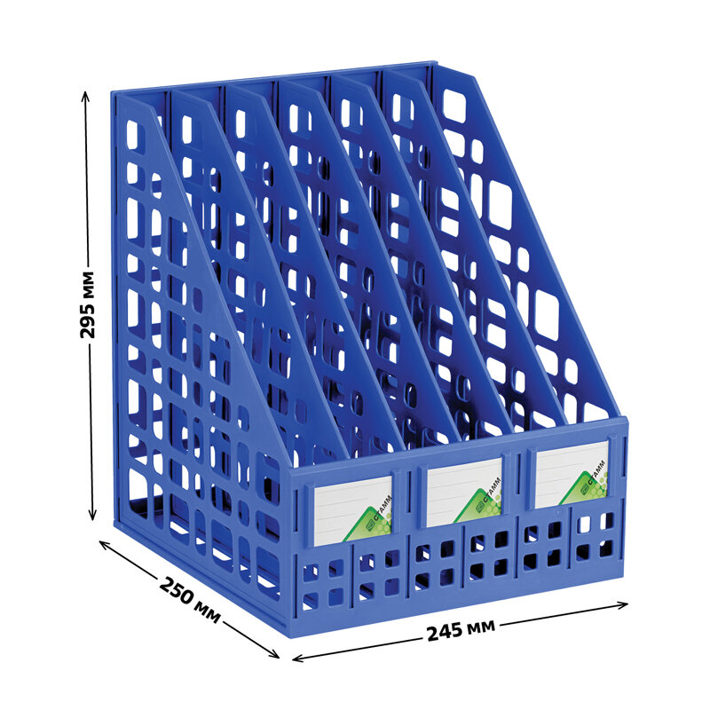 Лоток для бумаг вертикальный Стамм, 245мм, 6 отделений, синий (лт814)