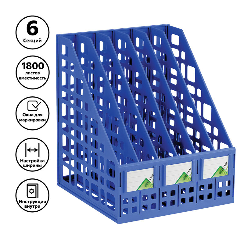Лоток для бумаг вертикальный СТАММ, сборный, 6 отделений, синий ( Артикул 324083 ) 863 ₽