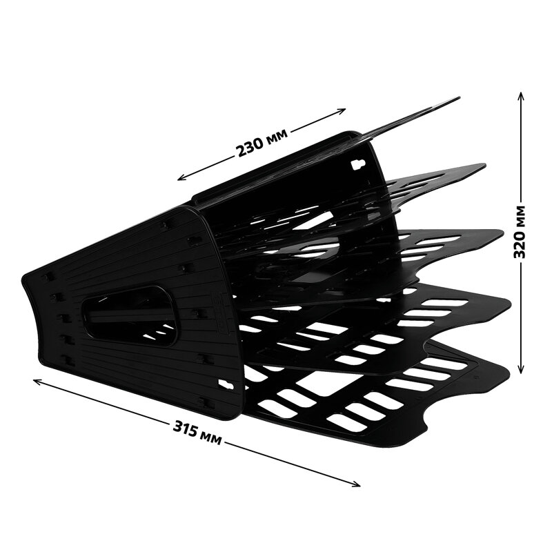Лоток для бумаг 5-ти секционный, 4 отделения, черный, ЛТ91