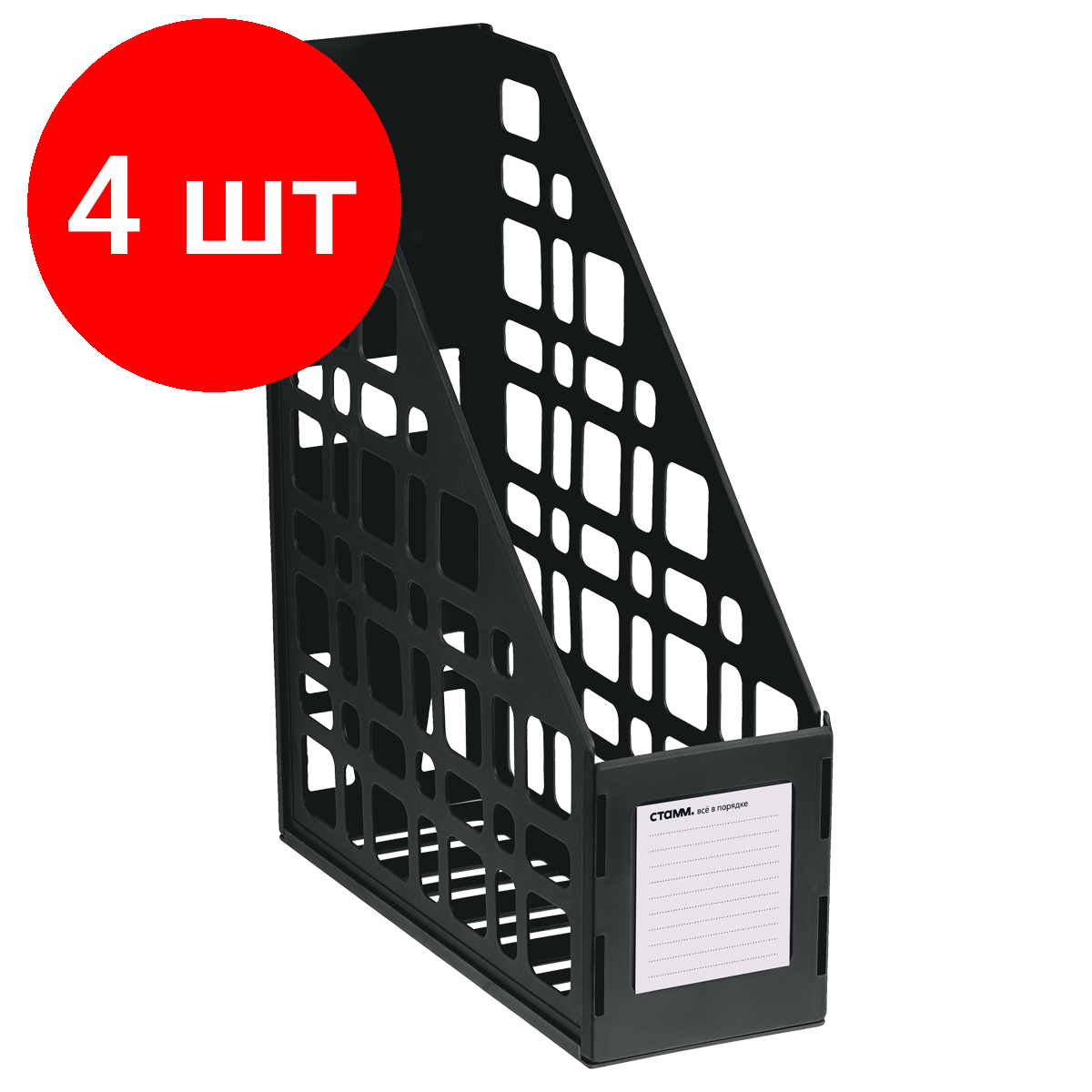 Комплект 4 шт, Лоток для бумаг вертикальный СТАММ, сборный, черный информация: