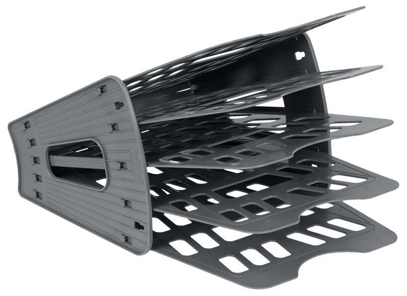 Лоток для бумаг 5-ти секционный, 4 отделения, серый, ЛТ90