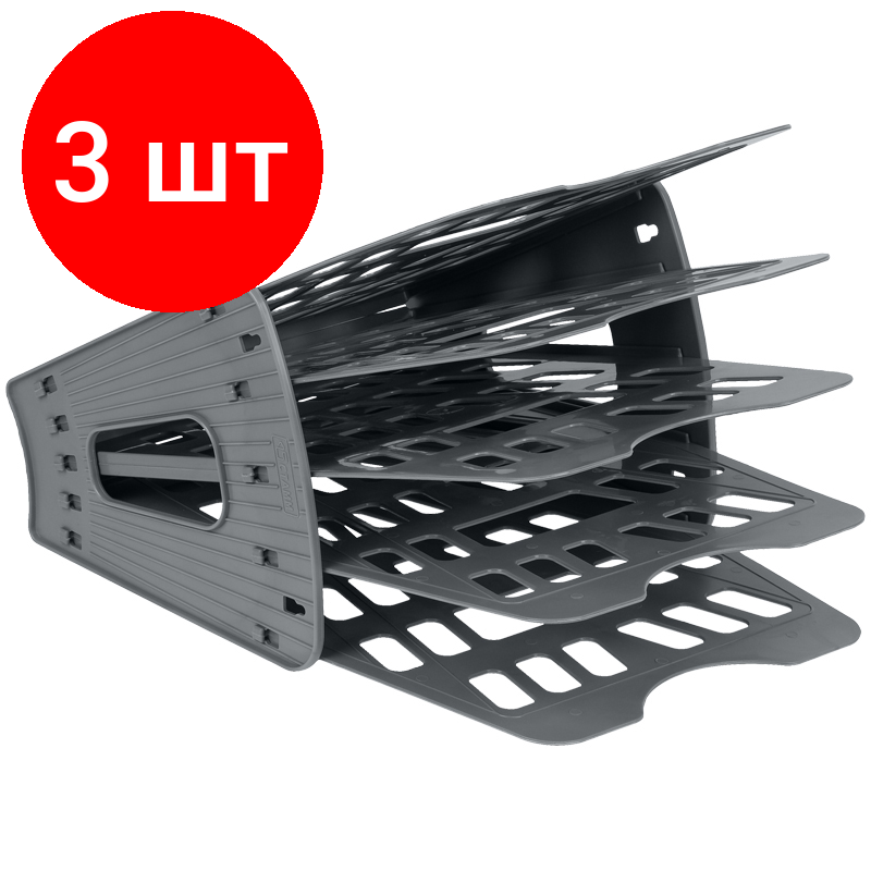 Лоток для бумаг СТАММ, комплект 3 шт., 5-ти секционный, 4 отделения, серый, ЛТ90 1 719 ₽