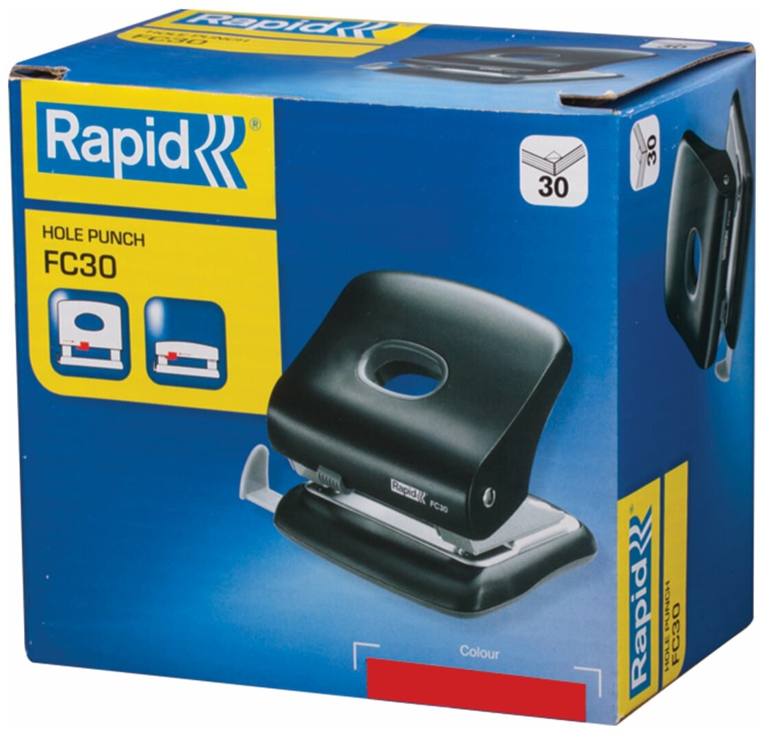 Дырокол RAPID (Швеция) «FC30», до 30 листов, черный, 23639401