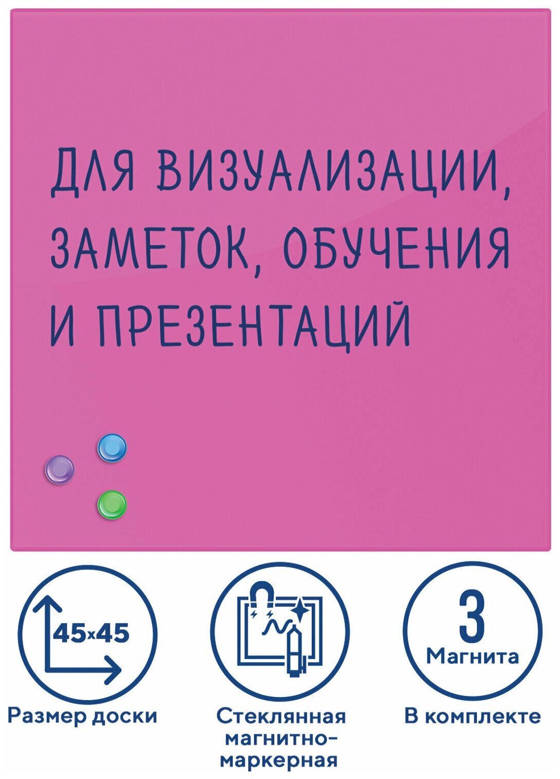Доска магнитно-маркерная стеклянная (45×45 см), 3 магнита, розовая, BRAUBERG 3 148 ₽